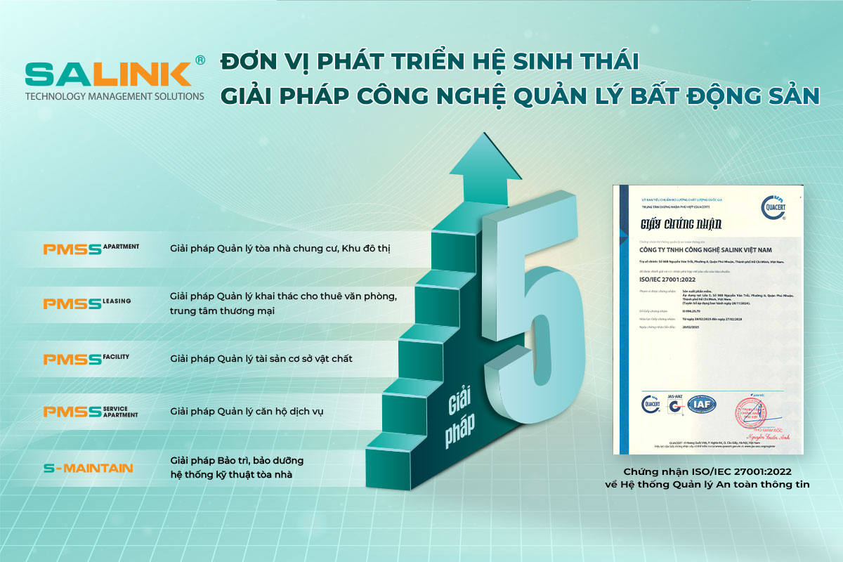 SALINK Việt Nam là đơn vị phát triển và triển khai hệ sinh thái giải pháp công nghệ quản lý BĐS tại Việt Nam, tập trung vào việc chuẩn hóa quy trình vận hành, đồng bộ dữ liệu và nâng cao hiệu quả quản trị cho doanh nghiệp. Hệ sinh thái PMSS (Property Management Solution System) được SALINK xây dựng và phát triển nhằm đáp ứng toàn diện các nhu cầu quản lý đa dạng...